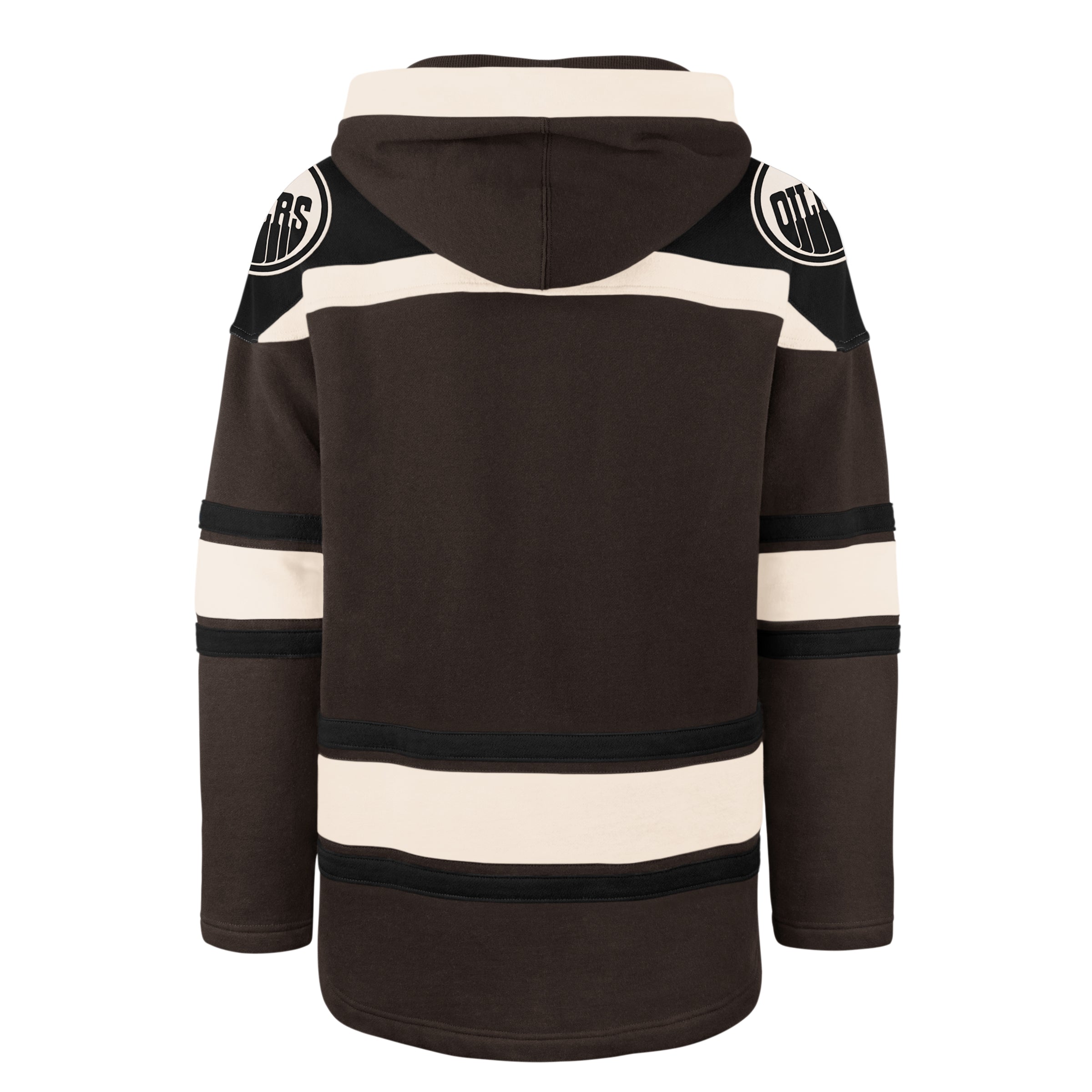 The '47 Lacer Hoodie is a hockey-inspired silhouette made from mid weight fleece with a thermalined hood and twill appliques on the body, shoulders, and sleeves. Cool machine wash, do not tumble dry.