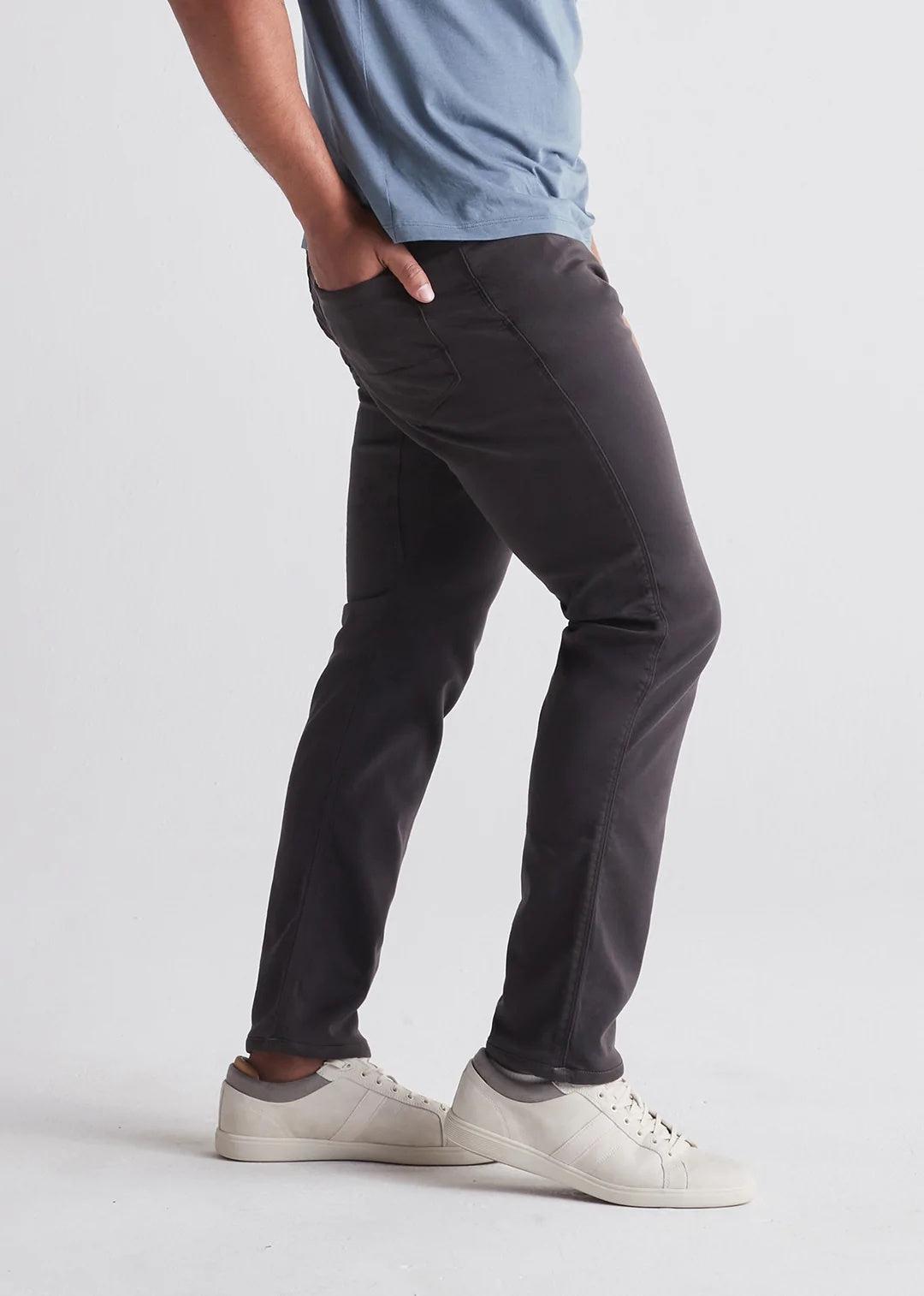 As comfortable as a sweatpant with the look of a pant. Mid-rise with a relaxed fit through the hip, and slight taper at the hem.