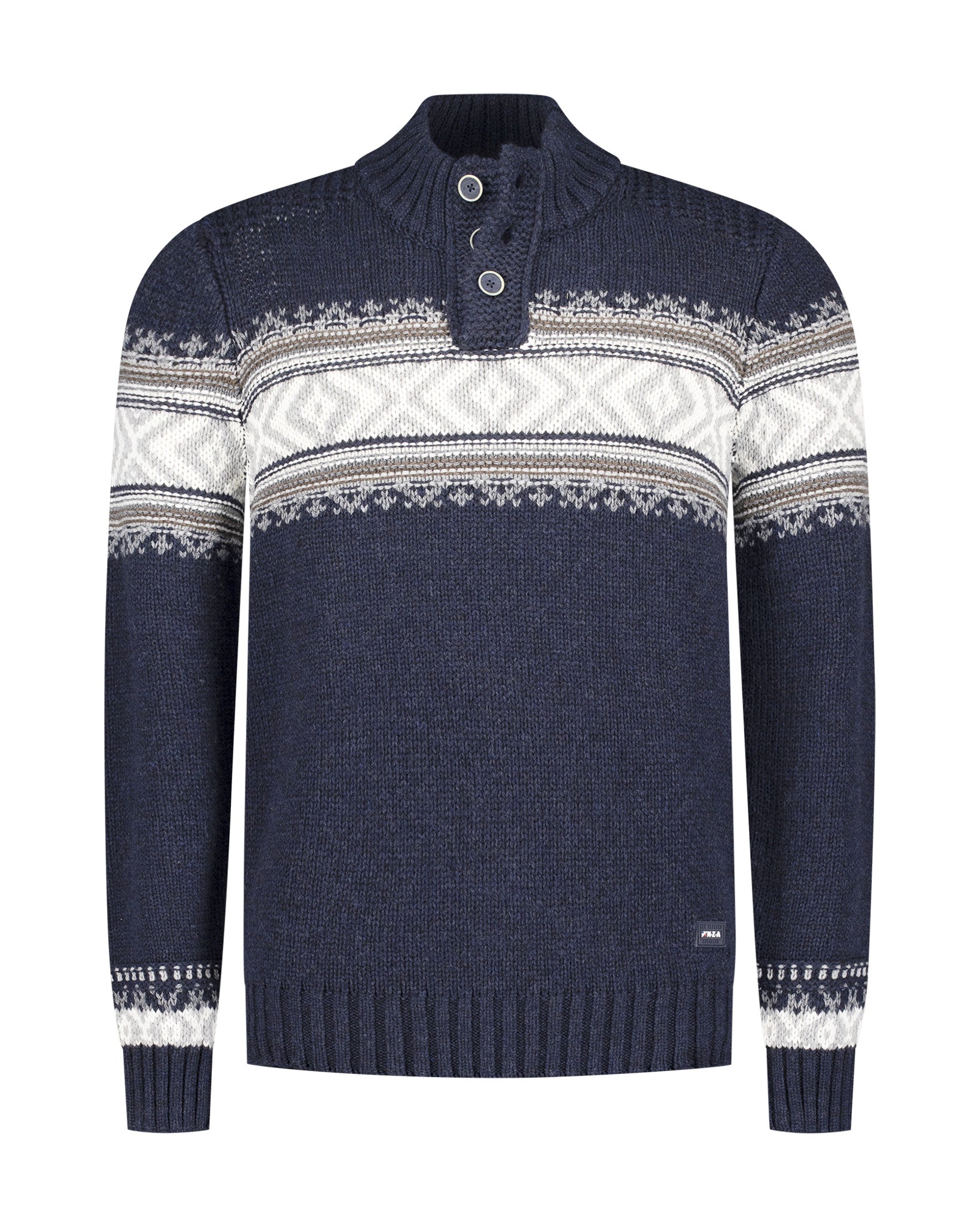 NZA Francis Pullover Button Collar In Classic Navy Melange