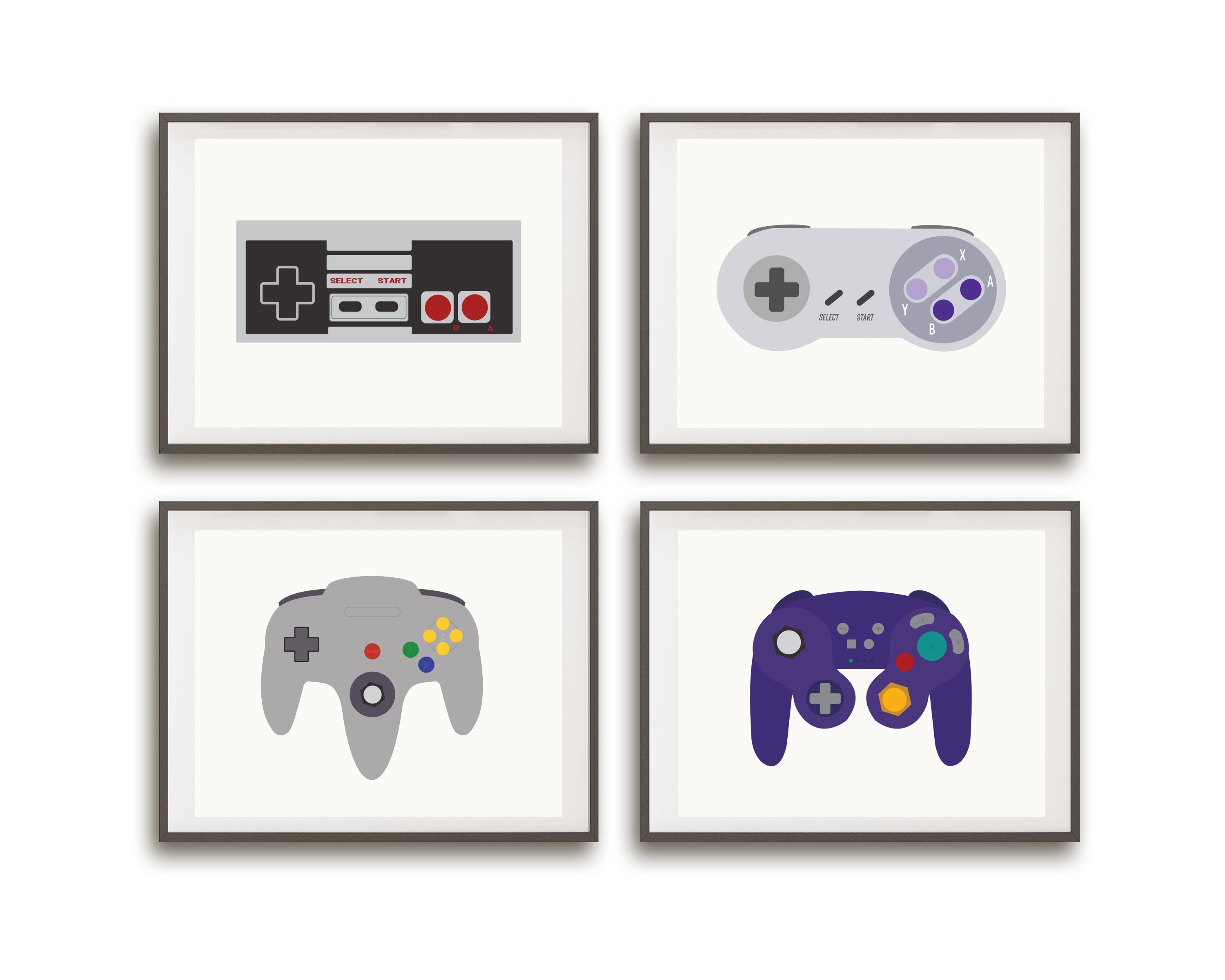 Set of four retro video game controller prints inspired by Nintendo