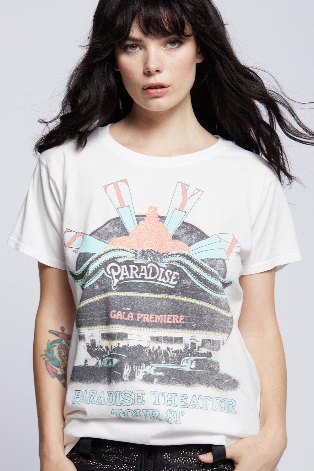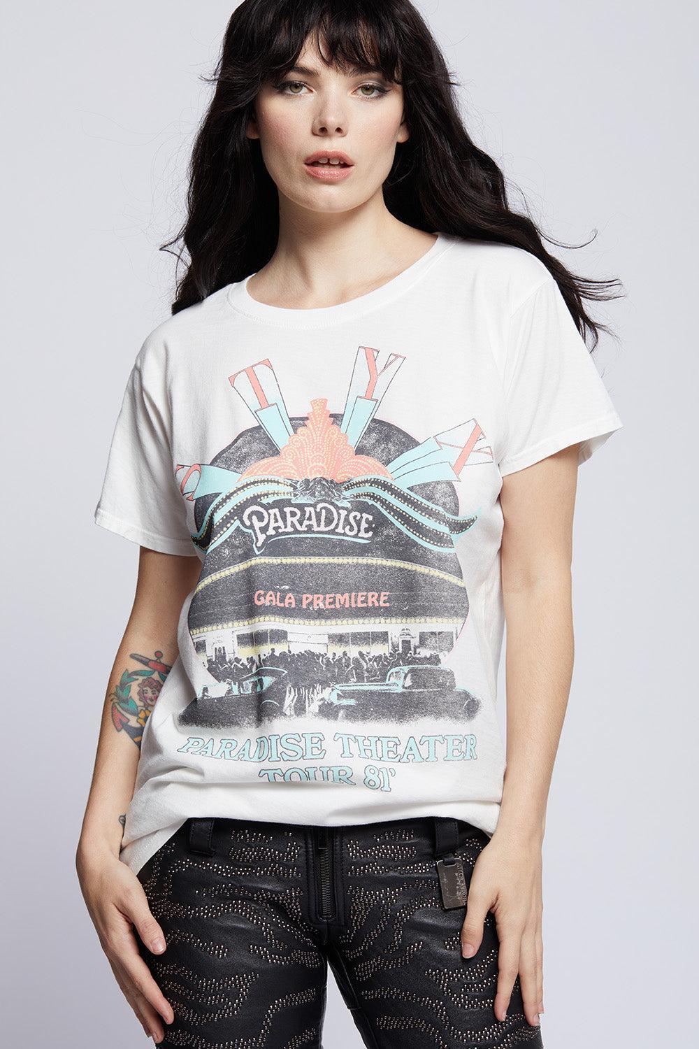 "Paradise Theatre" is the band's tenth studio album and was released in 1981. This vintage style tee features graphic from the album cover with, "Paradise Theater Tour 81'" on the front, and, "Rockin' The Paradise Tonight" on the back. Made with soft cotton fabric, a ribbed crew neckline, and a classic t-shirt fit.